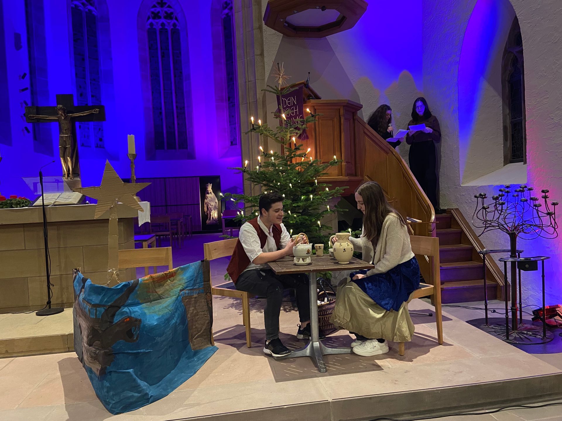 Mit einigen Texten und Liedern zum Thema "Licht" wurde das Programm fortgeführt, bevor als zentraler Programmbeitrag das Mini-Musical "Der Stern" von der Theater-AG unter Leitung von Daniela Greis in Zusammenarbeit mit der DRS-Band unter Fr. Weber und Hr. Koch aufgeführt wurde.